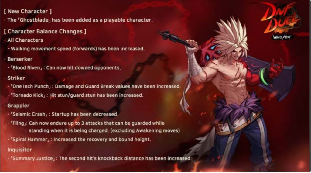 Falando em personagens jogáveis, o teste beta deste fim de semana terá aparentemente alguns contendores para escolher. O recém-revelado lutador Ghostblade estará na lista de testes, e as notas do patch apresentam mudanças para os seguintes personagens, o que implica que todos eles também serão jogáveis.