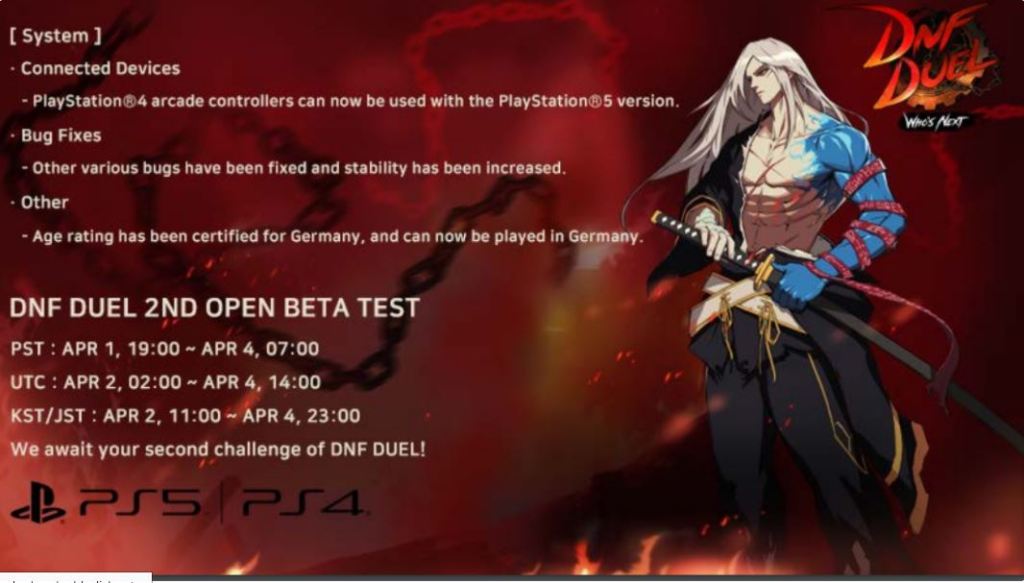 O segundo teste beta do DNF Duel estará disponível no PlayStation 4 e PlayStation 5 e está programado para começar às 23hrs em 1º de abril. Você poderá aproveitar o jogo até 4 de abril de 2022, às 11hrs, quando o teste beta for concluído.