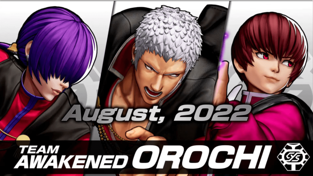 Um novo trailer que mostra o que os três são capazes de fazer em King of Fighters 15 foi lançado. De acordo com o trailer, Team Awakened Orochi está programado para ser lançado em agosto de 2022.