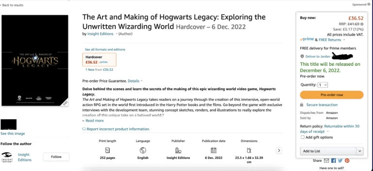 The Art and Making of Hogwarts Legacy: Exploring the Unwritten Wizarding World originalmente tinha uma data aparente de 31 de dezembro.