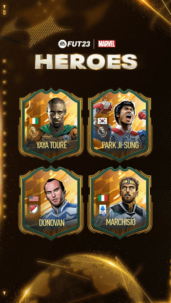 Os quatro FUT Heroes atualmente confirmados são Yaya Touré, Park Ji-Sung, Ricardo Carvalho e Claudio Marchisio, com mais a ser confirmado posteriormente.