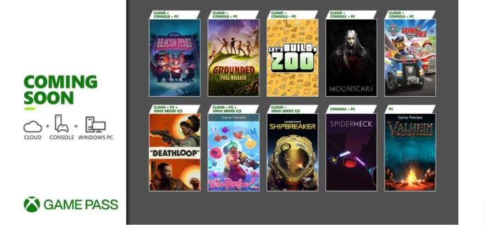 Moonscars (Cloud, Console e PC) e Grounded – Full Release (Cloud, Console e PC) estarão disponíveis a partir de 27 de setembro, seguidos por Let’s Build A Zoo (Cloud, Console e PC) e Valheim (Game Preview) ( PC) em 29 de setembro e PAW Patrol Grand Prix (Cloud, Console e PC) em 30 de setembro.