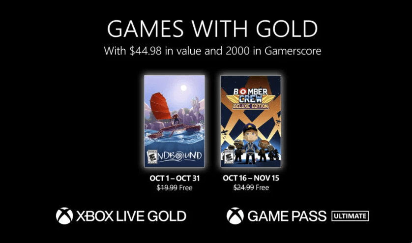 A Microsoft revelou os títulos Xbox Live Games with Gold de outubro de 2022.