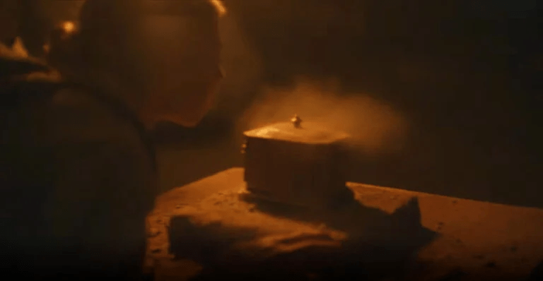 Mostra uma jovem em uma caverna, com uma tocha flamejante. Em um breve clipe separado, ela pode ser vista soprando a poeira de um artefato antigo.