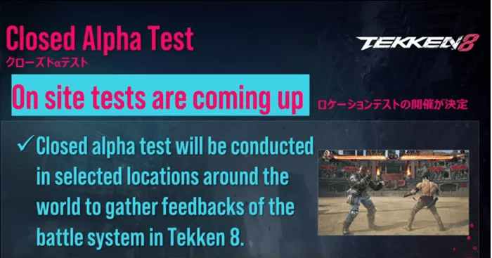 A Bandai Namco revelou durante as finais do Tekken World Tour que planeja sediar sessões de teste alfa fechado para Tekken 8 em breve, começando no Evo Japan 2023.