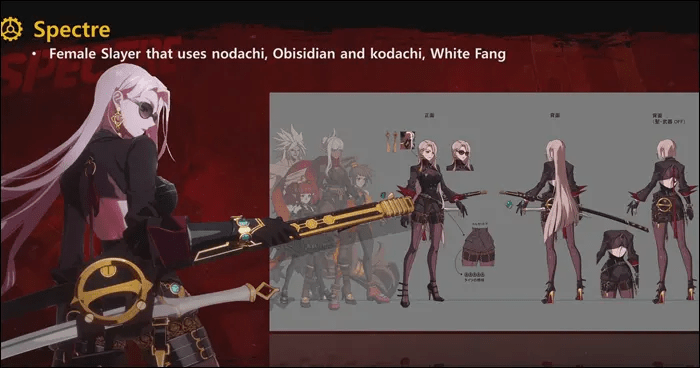 Como pode ser visto na filmagem, Spectre luta usando 2 lâminas que lhe dão excelente alcance e melhores opções de movimento do que a maioria do resto do elenco.