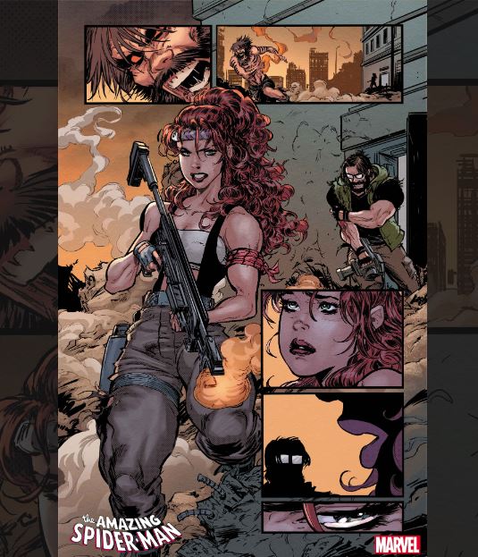 Os fãs podem dar uma primeira olhada nos segredos por trás da jornada de MJ na nova arte de interiores do artista superstar Kaare Andrews! Andrews embarca nesta edição de tamanho duplo para levar os leitores através dos dramáticos últimos anos de MJ, enquanto John Romita Jr. continua de onde as coisas pararam enquanto Spidey lida com as consequências de suas ações!
