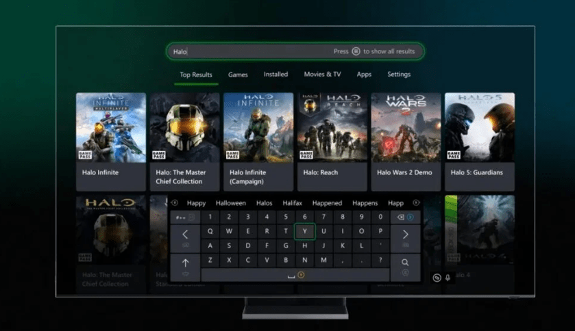 A página de pesquisa do console atualizada inclui uma nova aparência (foto acima), resultados em estilo de galeria, categorias de filtro visíveis navegáveis com os botões RB/LB e uma opção para pesquisar no YouTube na guia Filmes e TV.