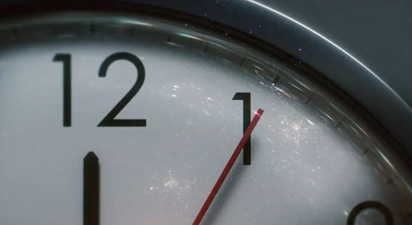 O vídeo mostra o ponteiro dos segundos de um relógio passando de 9 para 10 para 11, antes de ignorar 12 e pular direto para 1.