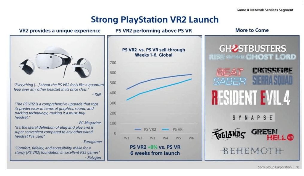 Na terça-feira, a Sony compartilhou os números de vendas pela primeira vez, revelando durante um webcast de negócios que o PSVR2 vendeu cerca de 600.000 unidades durante suas primeiras seis semanas de disponibilidade.