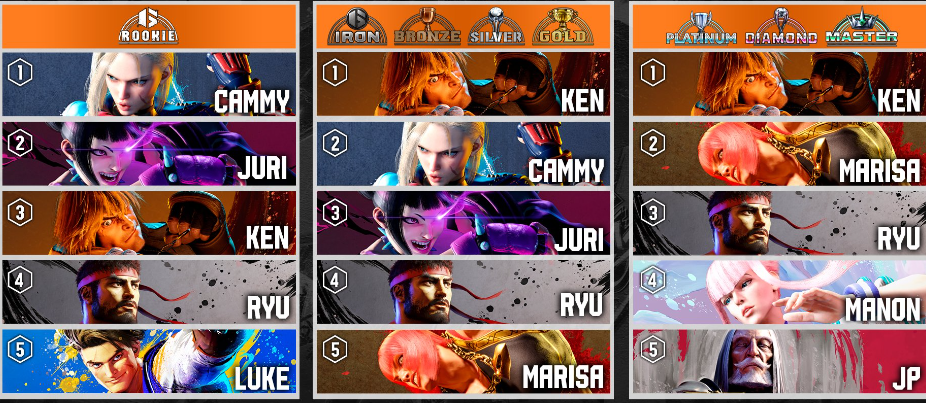 Curiosamente, eles decidiram dividir as classificações de personagens em três grupos entre apenas Rookie, seguido por Iron, Bronze, Silver e Gold e, finalmente, Platinum, Diamond e Master.