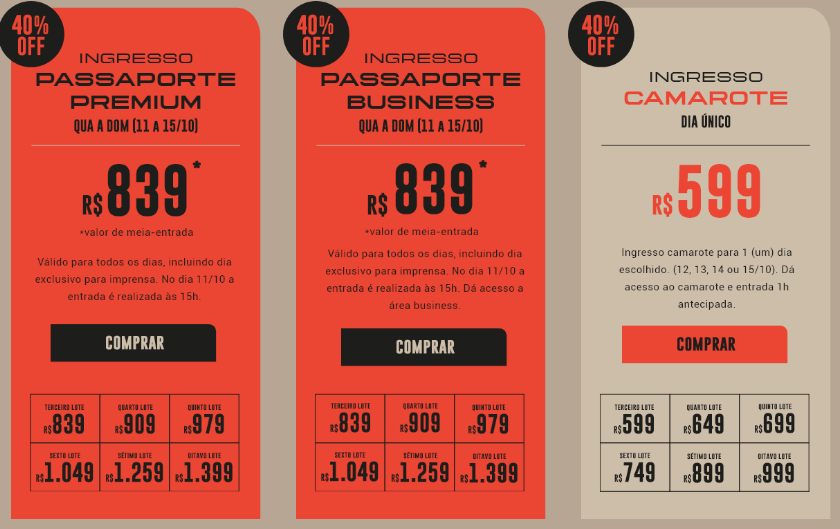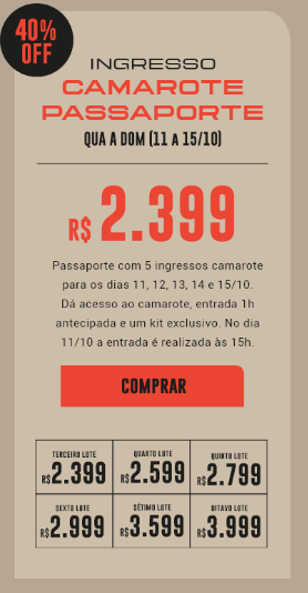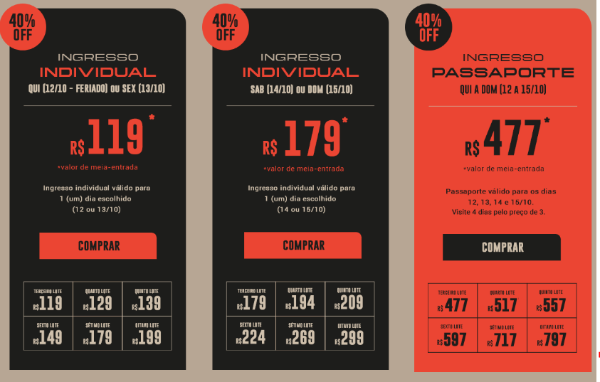 Os ingressos continuam a venda e estão no terceiro lote até dia 10/08 então é melhor garantir o seu com o desconto de 40%.