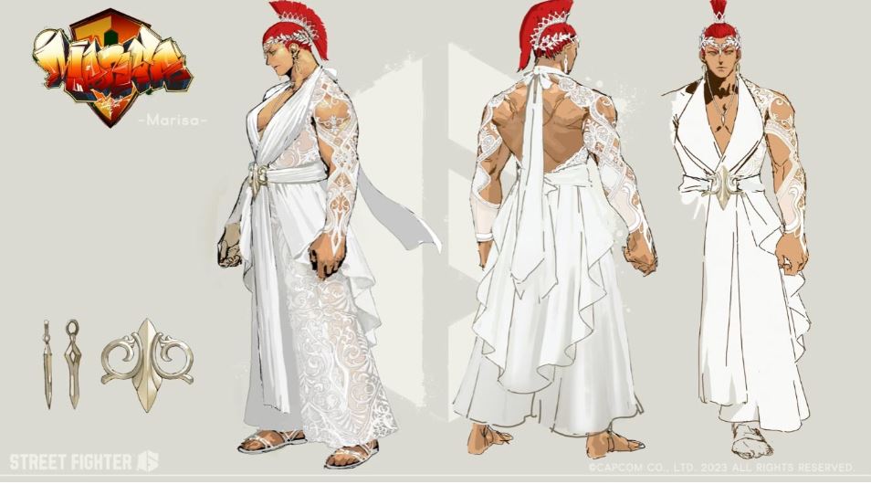 A roupa de casamento de Marisa é uma que você já deve ter visto em sua história em SF6, mas será realmente utilizável com o cabelo preso como um capacete espartano.