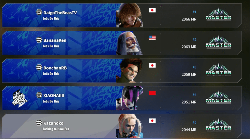 Curiosamente, Daigo está longe do topo dos League Points ganhos em SF6, considerando que ele está em 123º lugar no ranking mundial atualmente com 121.333 LP.