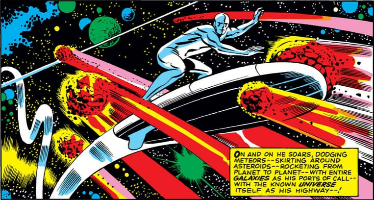 Você não pode errar ao ler qualquer história do Surfista Prateado fiada por seus criadores Stan Lee e Jack Kirby. Isso inclui a Trilogia Galactus original (QUARTETO FANTÁSTICO #48-50), bem como a história em #57-61 em que o Doutor Destino roubou os poderes do ex-Arauto. Essas aparições levam à primeira série SILVER SURFER que decorreu entre 1968-1969, o que o estabelece ainda mais como um forasteiro confuso preso na Terra.