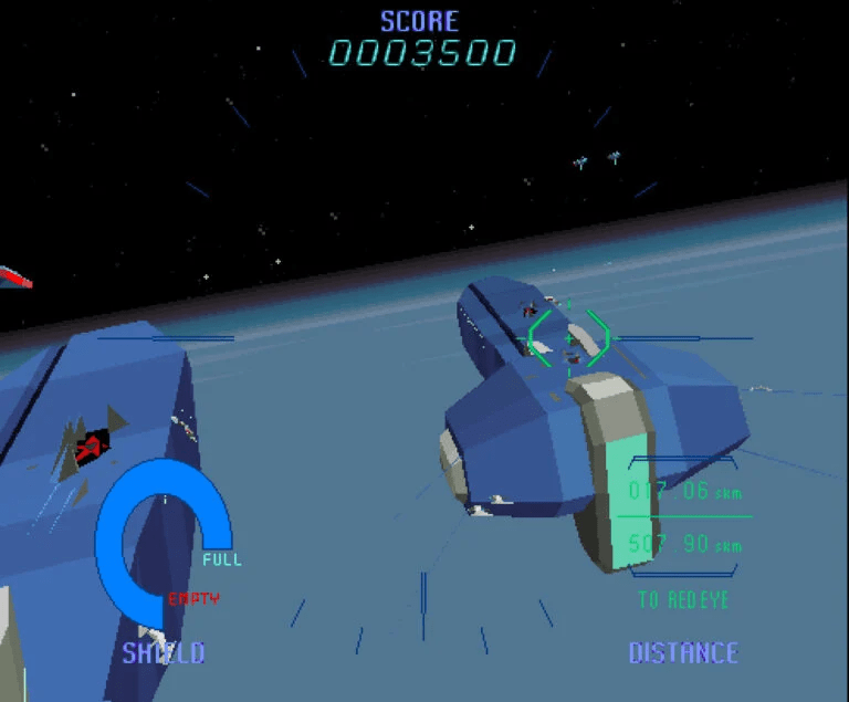 “Mas acho que isso é uma coisa – minha opinião é que o original nasceu do 3D estilo Amiga do Reino Unido da época, jogos como Star Glider ou Carrier Command. Nasceu disso e um pouco do jogo Star Wars Arcade, combinado com Starblade da Namco.