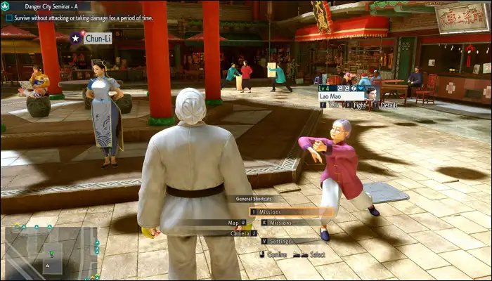 A responsável pela missão, uma senhora idosa, pode ser encontrada à esquerda de Chun-Li em China Town. Basta falar com ela para começar a missão.