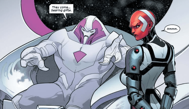 Embora este processo levasse estes pós-humanos para o que eles consideravam um plano superior de existência, o processo de assimilação também destruiria todos os seres vivos na Terra. No entanto, Moira MacTaggert foi morta antes que esse processo pudesse começar para valer, e sua morte redefiniu a linha do tempo e destruiu esse futuro em POWERS OF X (2019) #5 de Jonathan Hickman e RB Silva.