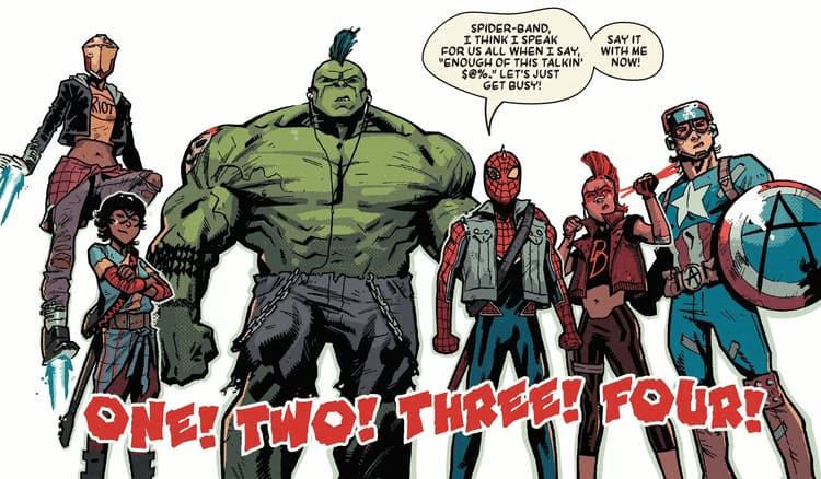 Reunindo os heróis da contracultura da Terra-138, o Spider-Band se destaca como o grupo de heróis mais proeminente do mundo. Além do Spider-Punk e do Captain Anarchy, inclui Robbie Banner, o Hulk deste mundo, que pode desencadear sua transformação através do rock, conforme revelado em EDGE OF SPIDER-GEDDON (2018) #1 por Jed MacKay e Gerardo Sandoval.