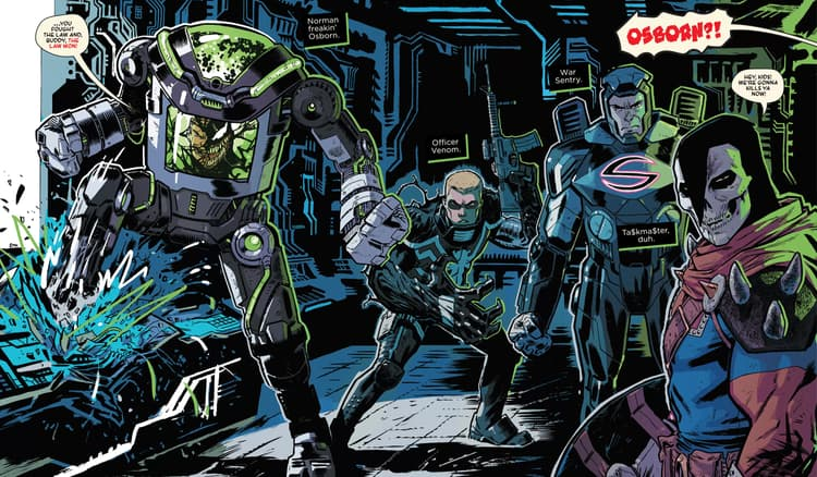 Osborn contou com alguns tenentes importantes para executar seus planos. Com um V.E.N.O.M. de sua autoria, Eugene “Flash” Thompson serviu Osborn como Oficial Venom. Robert Reynolds operou como Sentinela de Guerra blindado até que RiotHeart o invadiu e o roubou. Com a habilidade de imitar os movimentos de seus oponentes, Anthony Masters trabalhou para Osborn como Ta$kma$ter, e contratou Kraven e os Hunters para cumprir sua missão de preparar o Brooklyn para a gentrificação em SPIDER-PUNK (2022) #1 de Cody Ziglar e Justin Mason.