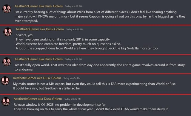 Dusk Golem afirmou estar ouvindo muitas coisas sobre o jogo de várias fontes, e disse que, pelo que estavam ouvindo, ele estava se moldando para ser “de longe o maior jogo [da Capcom] já tentado”.