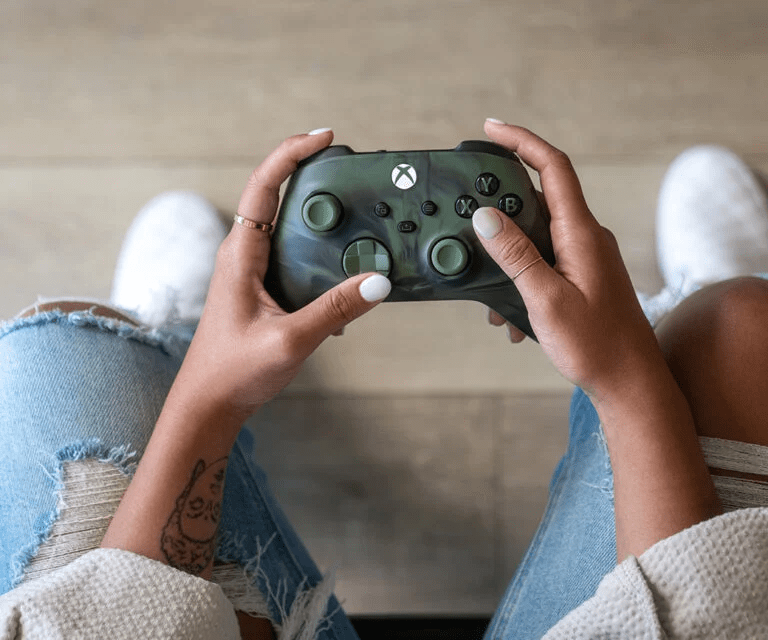 De acordo com a Microsoft, ele apresenta um “redemoinho de cor verde claro e escuro dinâmico e único”, além de pegas emborrachadas com padrão de diamante verde.