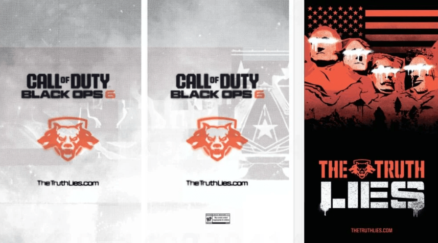 Eles incluem o logotipo do jogo e seu título oficial, Call of Duty Black Ops 6, além de links para o site teaser, TheTruthLies.com.