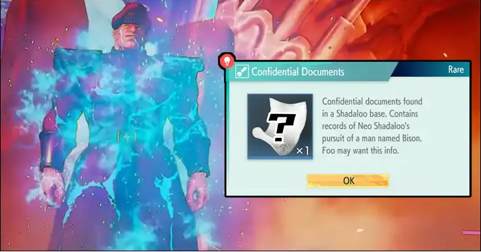 Eventualmente, o avatar se encontra na base da Shadaloo, onde alguns documentos interessantes podem ser encontrados. Este documento lista pessoas de interesse, especificamente aquelas com potencial para usar o Psycho Power, com o objetivo de potencialmente ressuscitar M. Bison.