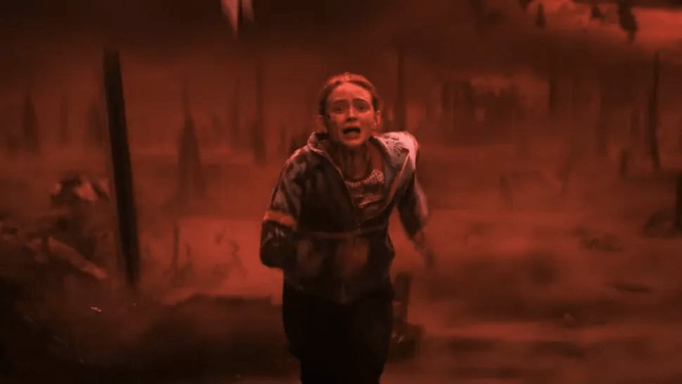 Toda a sequência é uma obra-prima, ainda maior pela incrível performance de Sadie Sink enquanto ela percorre a paisagem infernal vermelha de Vecna em direção à realidade, onde seus amigos e ex estão gritando por ela.