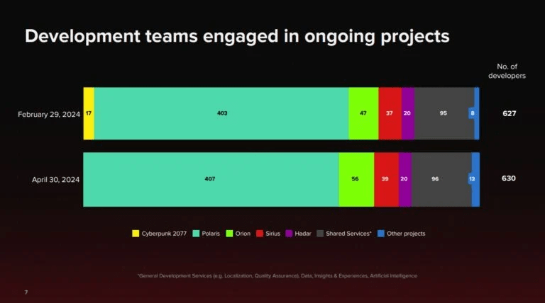 56 funcionários estão atualmente trabalhando na sequência do Cyberpunk, que tem o codinome Orion. 39 estão desenvolvendo o Projeto Sirius, spin-off de Witcher, 20 estão trabalhando no primeiro IP original da CD Projekt, que tem o codinome Hadar, e 13 estão envolvidos em “outros projetos”.