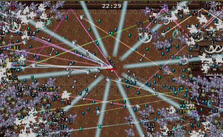 Vampire Survivors é um jogo de tiro roguelike em que os jogadores escolhem um dos vários personagens, que então atacam automaticamente enquanto o jogador luta contra ondas de monstros com o objetivo de sobreviver o maior tempo possível.