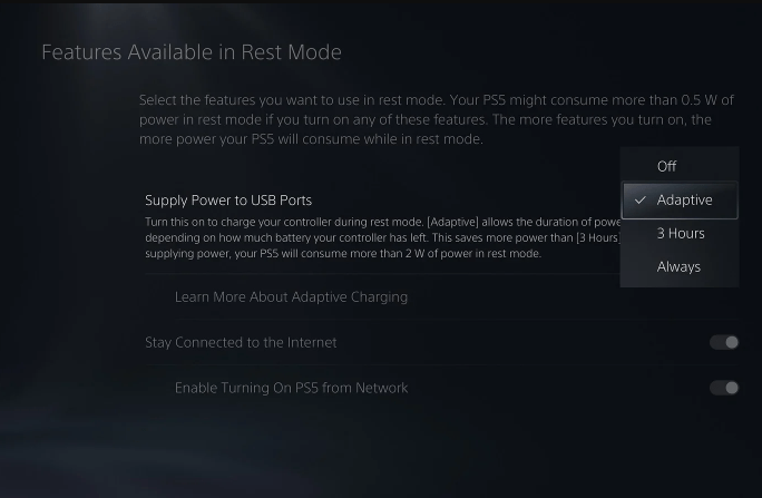 O carregamento adaptativo funcionará com o controlador DualSense, controlador DualSense Edge, controladores PlayStation VR2 Sense e controlador de acesso para participantes beta usando o modelo PS5 mais recente, quando o console estiver no modo de repouso.