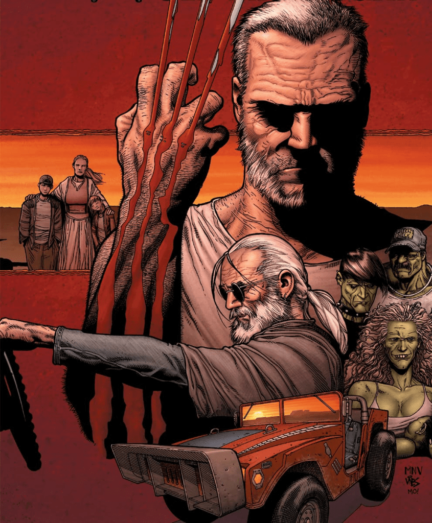 Após GUERRAS SECRETAS, o Velho Logan apareceu no Universo Marvel, onde se juntou aos X-Men e embarcou em inúmeras aventuras solo. Quando sua falha no fator de cura o deixou com meses de vida, este Wolverine retornou às Terras Ermas em DEAD MAN LOGAN (2018) #6 de Ed Brisson e Mike Henderson.