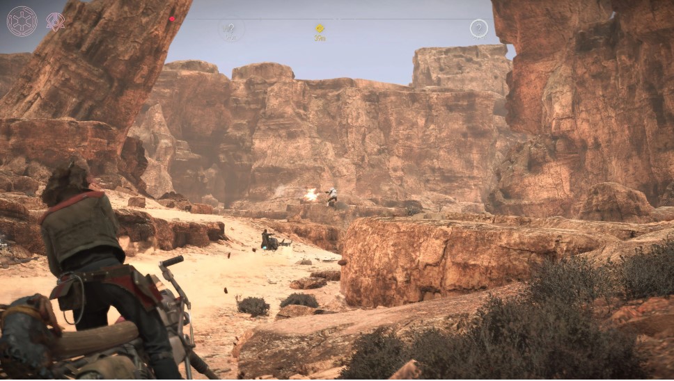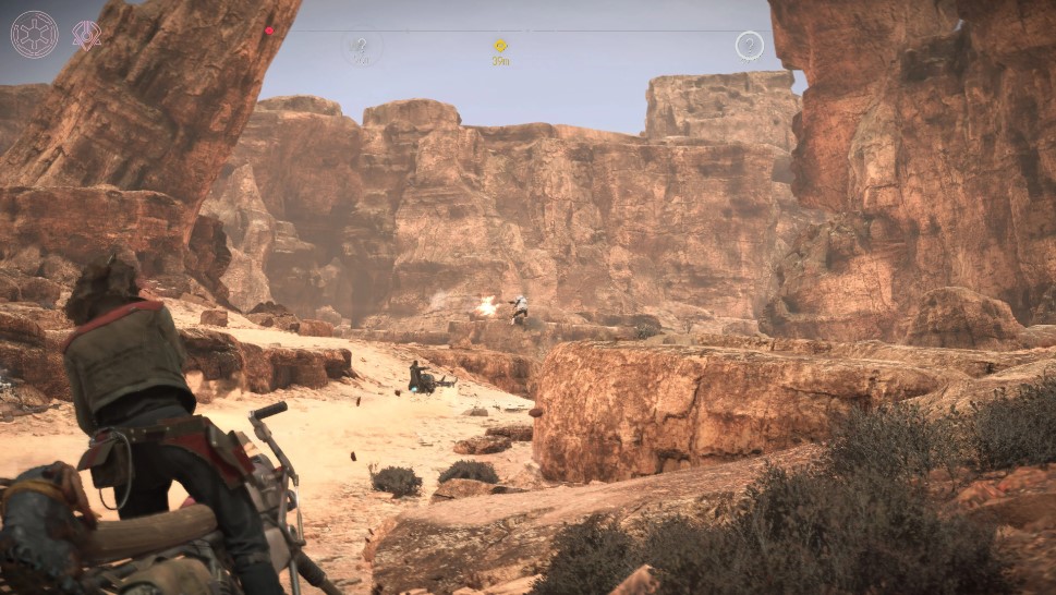 Falando em jogabilidade, Star Wars Outlaws é um jogo de tiro em terceira pessoa, com uma ênfase maior do que o esperado na furtividade. O tiroteio é útil, semelhante à série Uncharted da Naughty Dog, mas nunca se destaca. A narrativa principal apresenta excelentes tiroteios cinematográficos, mas as batalhas aleatórias no mundo não são nada de especial.