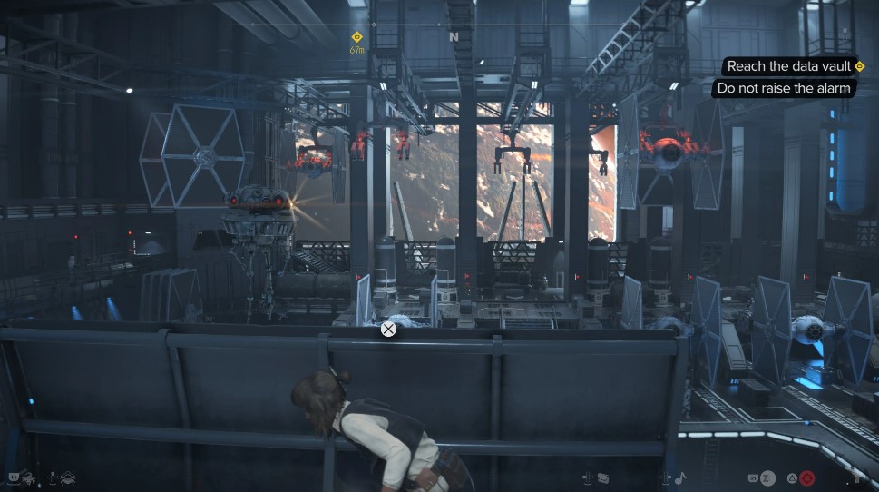 Encontramos vários problemas técnicos durante o jogo de Star Wars Outlaws no PS5. Isso incluiu coisas como personagens desaparecendo do mundo, nosso speeder também desaparecendo, deixando-nos flutuando no ar enquanto acelerávamos por um planeta, várias linhas de voz tocando ao mesmo tempo e elementos interativos não aparecendo.
