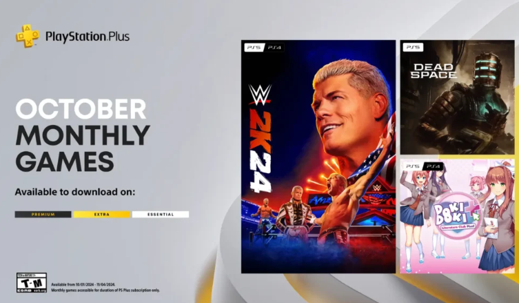 Os jogos, que estarão disponíveis para membros de todos os níveis do PS Plus a partir de 1º de outubro, incluem WWE 2K24, Dead Space e Doki Doki Literature Club Plus.