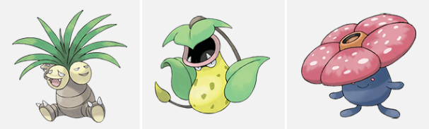 Bellsprout, Weepineell, Victreebell – Pode encontra-los nas rotas 12,13,14 e 15. Porém, para evoluir para Victreebell deve usar a leaf stone.