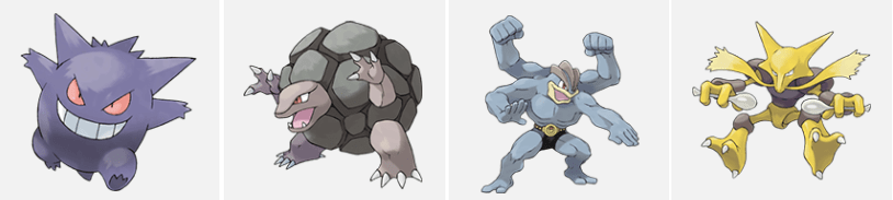 Os pokémons abaixo só poderão evoluir se você os trocar por link.