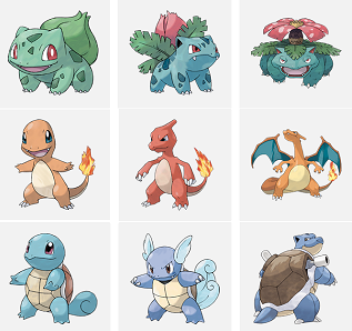 Obtendo os pokemons iniciais e suas evoluções: