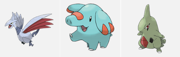Skarmory, Phanpy e Larvitar