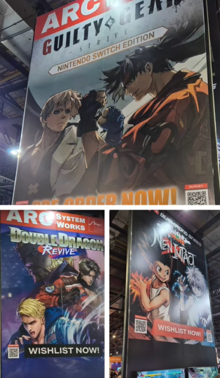 Também estreando na BGS a Arc System tram o Guilty Gear Strive para Nintendo Switch, os recém anunciados Hunter x Hunter: New Impact e Double Dragon Revive. Além de testar os jogos, você recebe brindes referente ao jogo que testou, variando de botons e cordões.