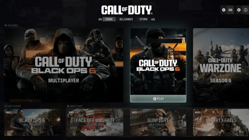 Neste momento, Black Ops 6 e Warzone continuarão a ser os principais blocos de jogo na guia Home.