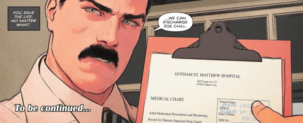 No passado, Thomas responde a uma situação tensa quando o homem descobre que sua esposa e filho o abandonaram e exige alta do hospital. Não vendo razão para manter o homem no hospital, Thomas relutantemente lhe dá alta. E foi aí que finalmente aprendemos o nome do homem, Joe Chill.
