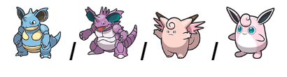 - Nidorina/ Nidorino –> Moon Stone–> Nidoqueen/ Nidoking
