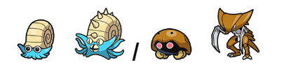 - Kabuto/Omanyte–>Lv. 40–>Kabutops/Omastar