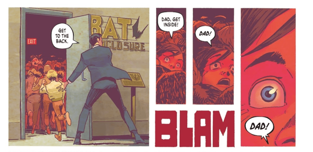 A edição nº 2 oferece mais informações sobre como esse trauma deu origem ao Batman. Vemos outro flashback do tiroteio no zoológico, onde uma bala perdida abre um buraco na exposição de morcegos. Bruce é engolfado por morcegos e permanece catatônico até que Jim Gordon chega e o ouve gritar. Este Bruce Wayne claramente tem um profundo fascínio e terror por morcegos.