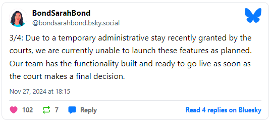 No entanto, em um novo tópico postado no Bluesky na quarta-feira, Bond afirmou que, embora o Xbox esteja pronto para implementar esses novos recursos, ele está atualmente impedido de fazê-lo.