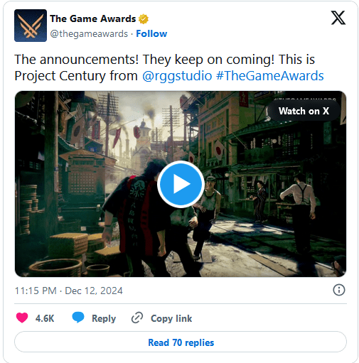 O Ryu Ga Gotoku Studio revelou seu mais novo jogo, Project Century.