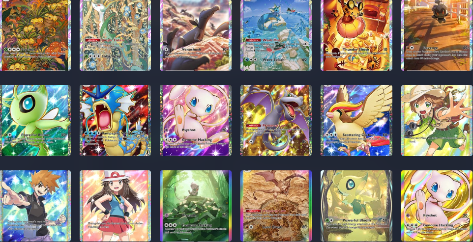 Completar Genetic Apex, o primeiro conjunto de cartas que totaliza 226 oficialmente, mas também contém 60 cartas raras de arte alternativa, levará cerca de dois anos para os jogadores não gastarem dinheiro, de acordo com uma estimativa, enquanto aqueles que querem fazer chover podem encerrar a coleção depois de largar cerca de US$ 1.500.