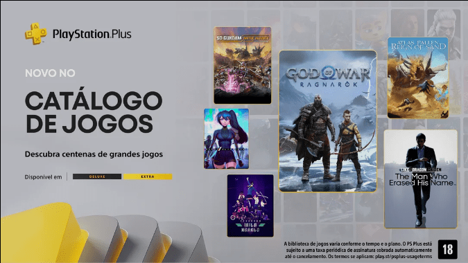 As adições deste mês (listadas na íntegra abaixo) incluem God of War Ragnarök, Like a Dragon Gaiden: The Man Who Erased His Name e Atlas Fallen: Reign of Sand.
